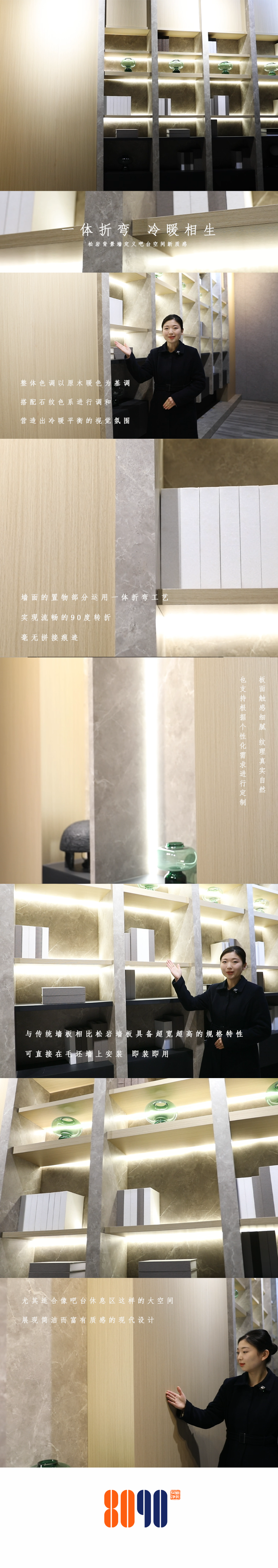 一体折弯 冷暖相生 松岩背景墙定义吧台空间新质感